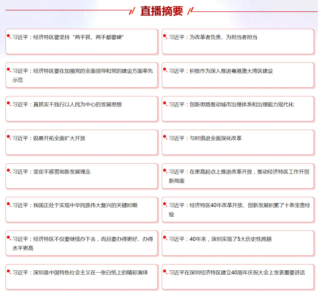今年是深圳經(jīng)濟(jì)特區(qū)建立40周年,而今天深圳經(jīng)濟(jì)特區(qū)建立四十周年慶祝大會(huì)在廣東省深圳市隆重舉行。中共中央總書(shū)記、國(guó)家主席、中央軍委主席習(xí)近平在大會(huì)并發(fā)表了重要講話。